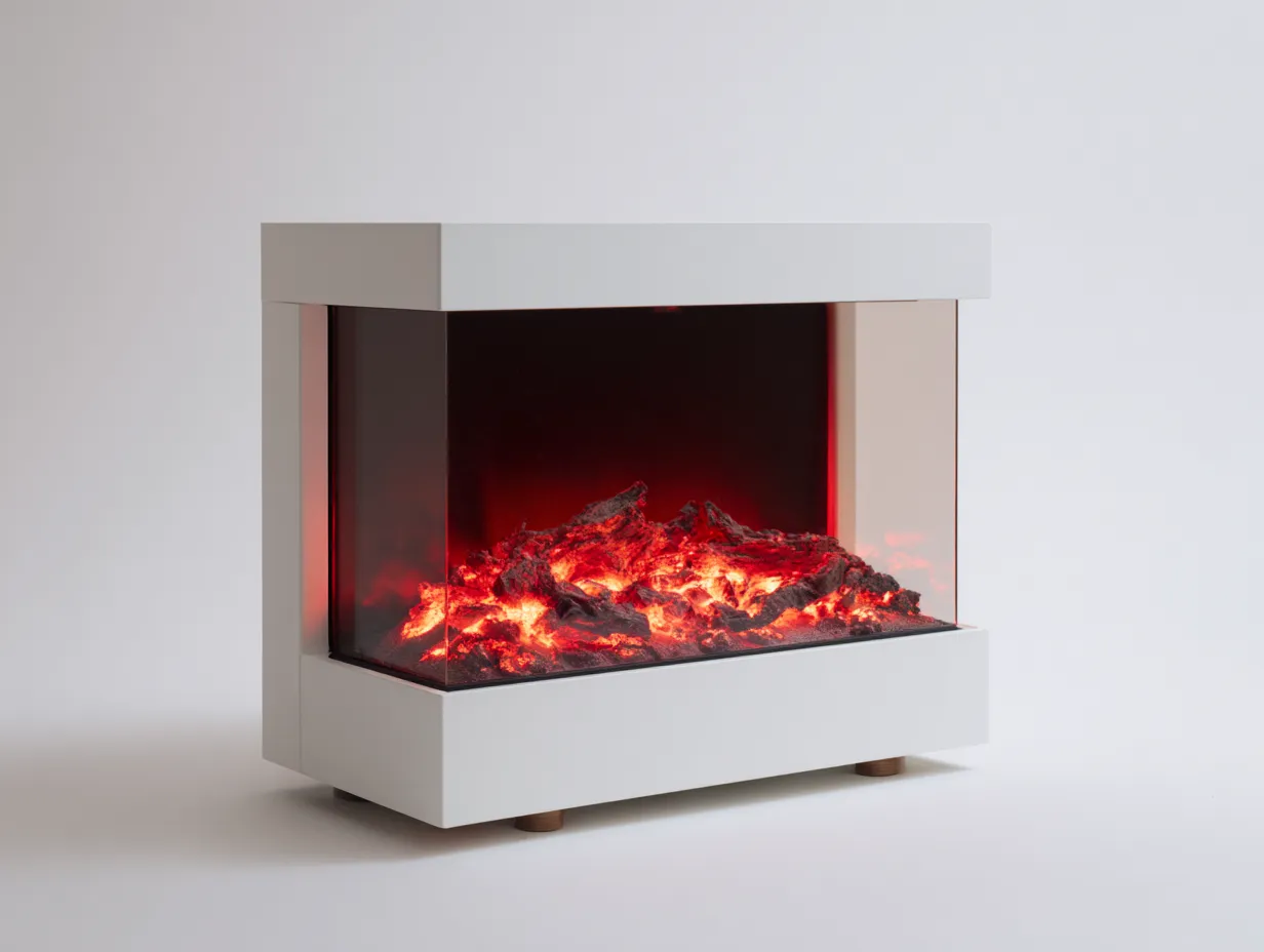 Camino decorativo con effetto fiamma visivo alimentato elettricamente. Non genera fumo né residui e non richiede canna fumaria. Progettato per l'utilizzo in ambienti interni.